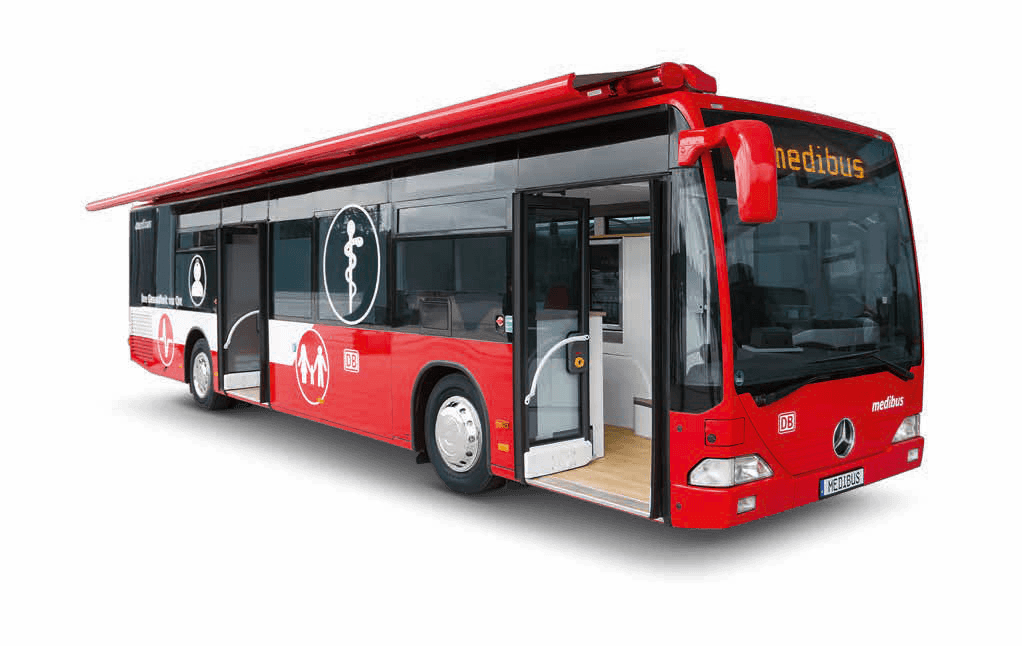 Ob hausärztliche Versorgung, Gesundheitsveranstaltungen oder betriebsärztliche Untersuchungen – unsere DB Medibusse können extrem flexibel eingesetzt werden. Je nach Nachfrage planen wir Routen, Aufgaben und Einsatzorte. Die Ärzte an Bord werden zum Hausarzt auf Rädern, die sich dank modernster Technik und Telemedizin jederzeit mit Fachärzten und Kollegen beraten oder auch Übersetzer heranziehen können, um eine bestmögliche Diagnostik und Therapie sicherzustellen. So gelingt es uns: